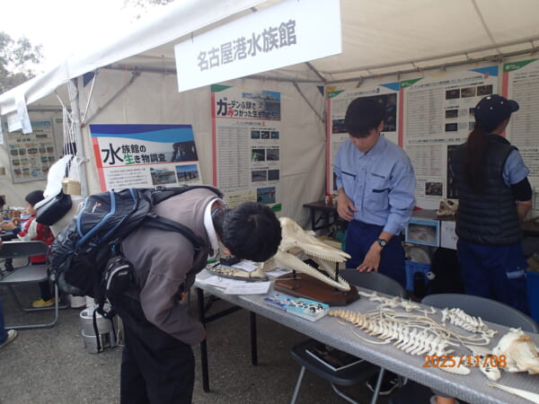 なごや生物多様性センターではミニ博物館なごやナチュレ、ミニ水族館なごやリウムを公開しました。子どもから大人まで、多くの来場者の方々が熱心に水槽をのぞき込んで生きものの観察を楽しんでいました。目の前で動き、泳ぐ生きものたちを通して名古屋の河川や海周辺の生物の多様性を直接感じることが出来る展示となっていました。