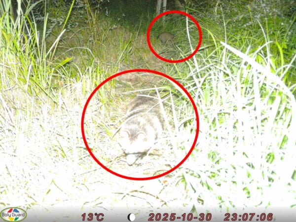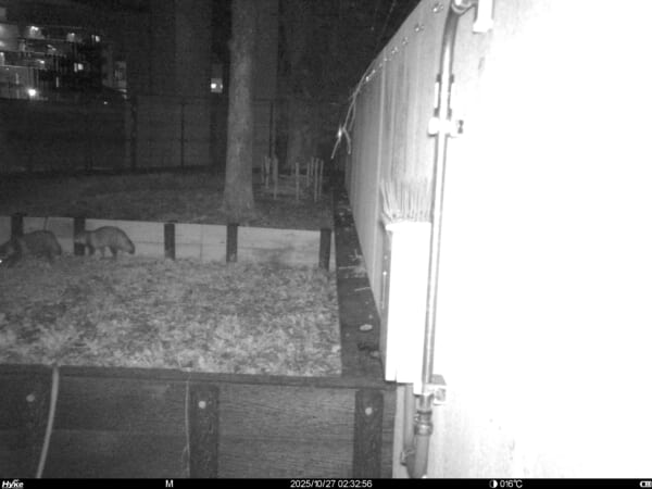 翌日に動物カメラをよく映るように画角を調整した結果、ついに姿を押さえました。2頭で映っています。